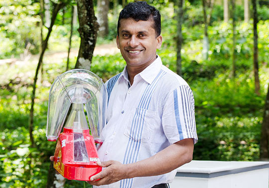 Mr. Mathews K. Mathew also known as Mathews Kaitholil is from Kappadu near Kanjirappally in Kottayam District, Kerala. After his graduation, he spent his entire time and energy for finding a permanent solution for destroying the common at its origin itself. In the beginning of his research and observation, he developed a model of a product suitable for killing mosquitoes. After years of experimentation, the first product was released aptly named ‘HawkeR’, a dollar baes mosquito destroying device. This innovation has brought Mr. Mathews laurels and recognition across the nation. Not someone to rest on his laurels, Mr. Mathews has continued his innovation streak bringing out a solar based housefly trapper-destroyer. Ever the innovator, Mr. Mathews has visionary plans to expand his product line up to solve other common pest problems.